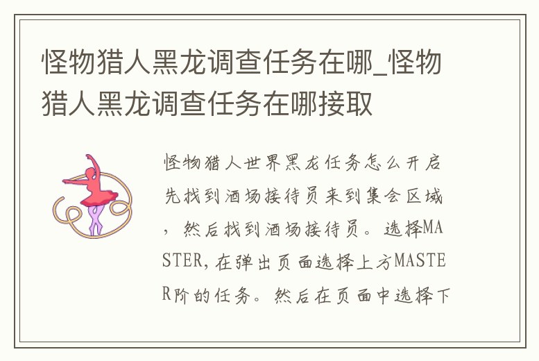 怪物獵人黑龍調查任務在哪_怪物獵人黑龍調查任務在哪接取