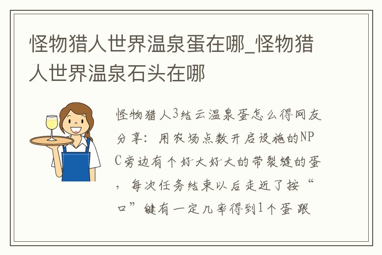 怪物獵人3結云溫泉蛋怎么得