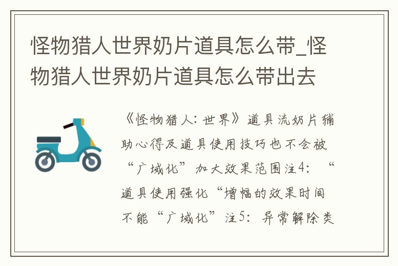 怪物獵人世界奶片道具怎么帶_怪物獵人世界奶片道具怎么帶出去