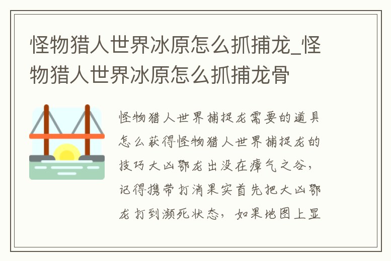 怪物獵人世界冰原怎么抓捕龍_怪物獵人世界冰原怎么抓捕龍骨