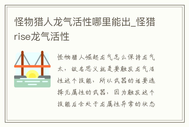 怪物獵人龍氣活性哪里能出_怪獵rise龍氣活性