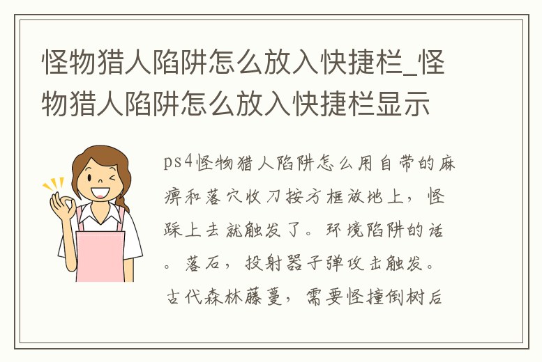 - 怪物獵人陷阱怎么放入快捷欄_怪物獵人陷阱怎么放入快捷欄顯示
