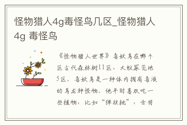 怪物獵人4g毒怪鳥幾區(qū)_怪物獵人4g 毒怪鳥