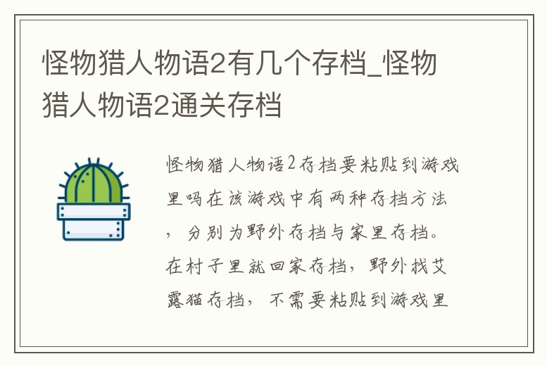 在該游戲中有兩種存檔方法,分別為野外存檔與家里存檔。在村子里就回家存檔,野外找艾露貓存檔,不需要粘貼到游戲里。