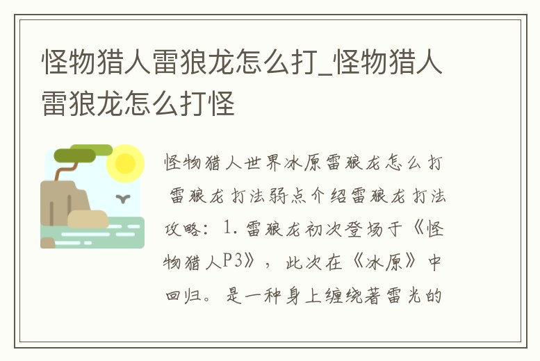 怪物獵人雷狼龍怎么打_怪物獵人雷狼龍怎么打怪