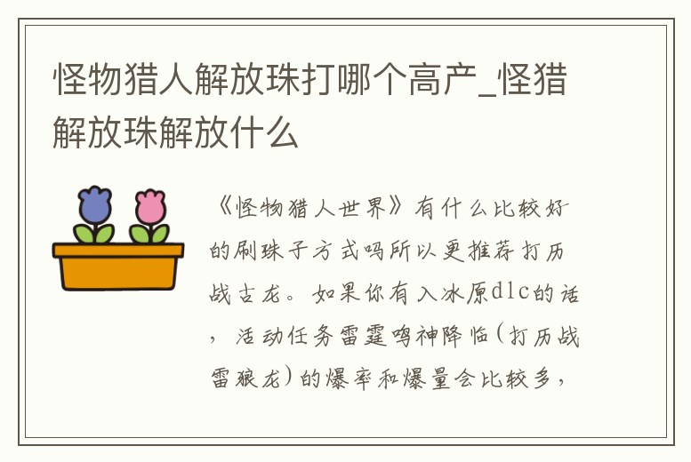 怪物獵人解放珠打哪個高產_怪獵解放珠解放什么