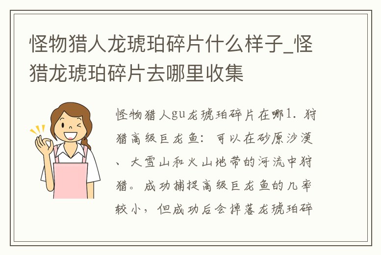 怪物獵人龍琥珀碎片什么樣子_怪獵龍琥珀碎片去哪里收集