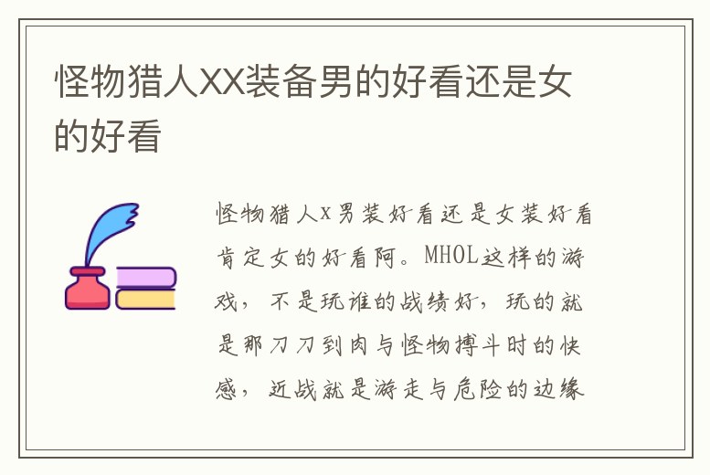 肯定女的好看阿。MHOL這樣的游戲,不是玩誰的戰績好,玩的就是那刀刀到肉與怪物搏斗時的快感,近戰就是游走與危險的邊緣,不僅熱血澎湃,同樣對操作的要求也很細膩,無近戰不獵人 快點來挑戰自己的極限吧 。