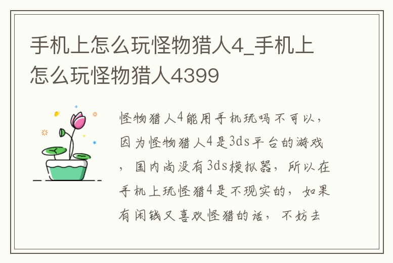 手機上怎么玩怪物獵人4_手機上怎么玩怪物獵人4399