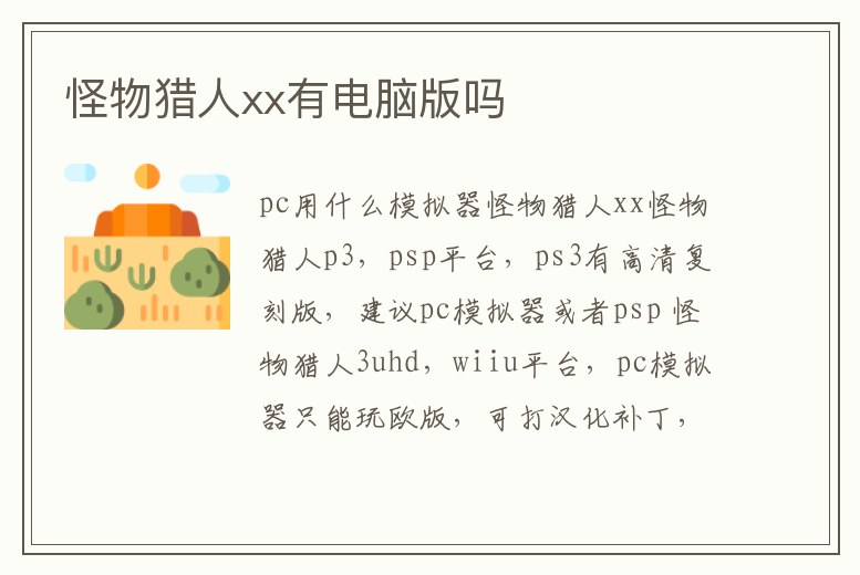 網友分享:可以,用psp模擬器,2g和3p都可以,強力推薦玩怪物獵人3p真心好玩。在電腦上騰訊已出了怪物獵人online 在內測 樓主感興趣的話可以去玩一下 。