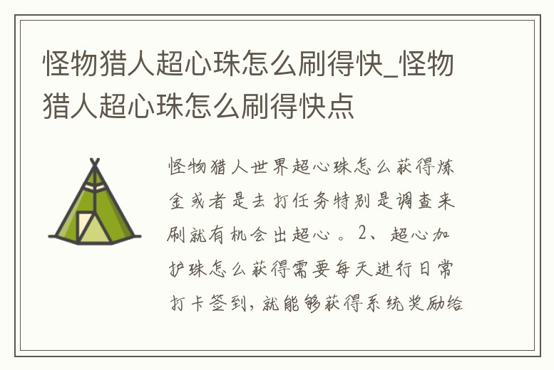怪物獵人超心珠怎么刷得快_怪物獵人超心珠怎么刷得快點