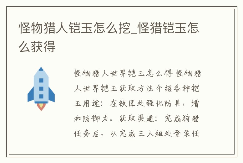 怪物獵人鎧玉怎么挖_怪獵鎧玉怎么獲得