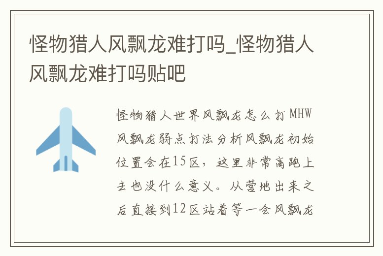 怪物獵人風(fēng)飄龍難打嗎_怪物獵人風(fēng)飄龍難打嗎貼吧