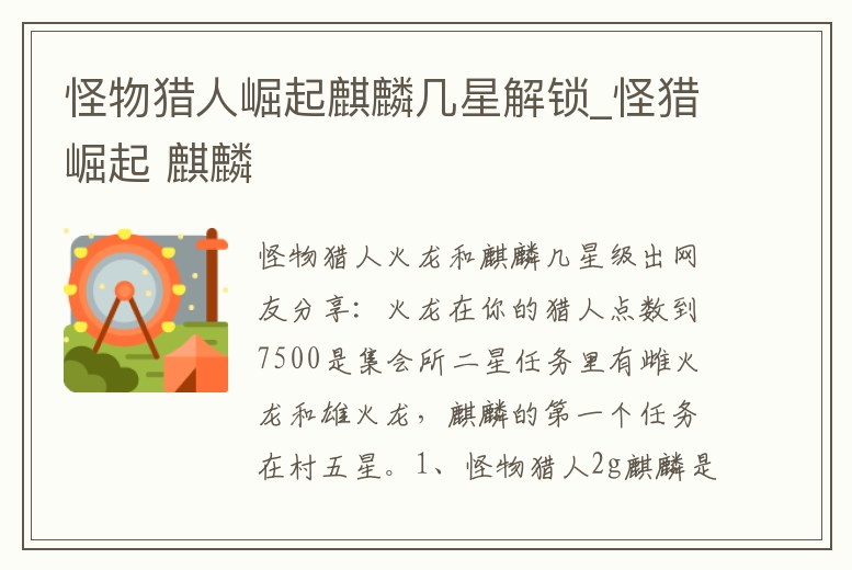 怪物獵人崛起麒麟幾星解鎖_怪獵崛起 麒麟