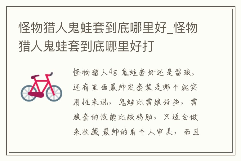 怪物獵人鬼蛙套到底哪里好_怪物獵人鬼蛙套到底哪里好打