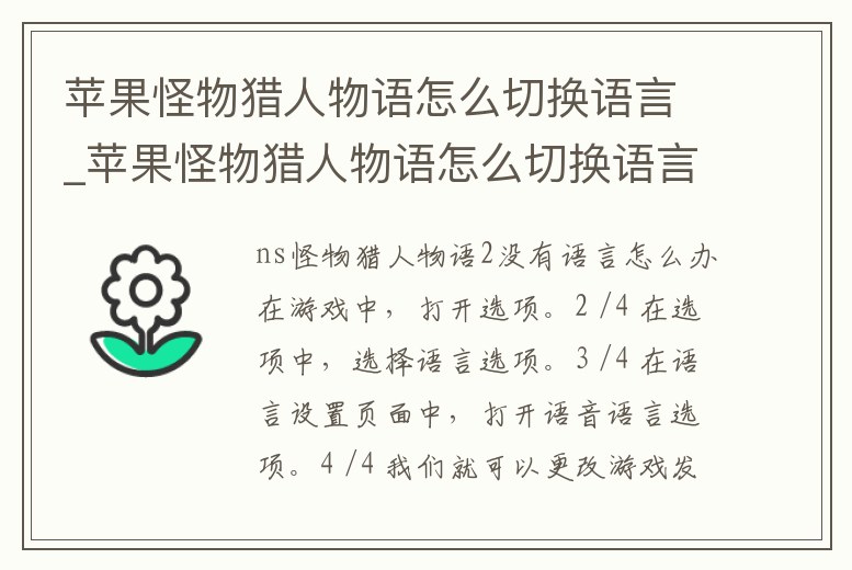 蘋果怪物獵人物語怎么切換語言_蘋果怪物獵人物語怎么切換語言模式