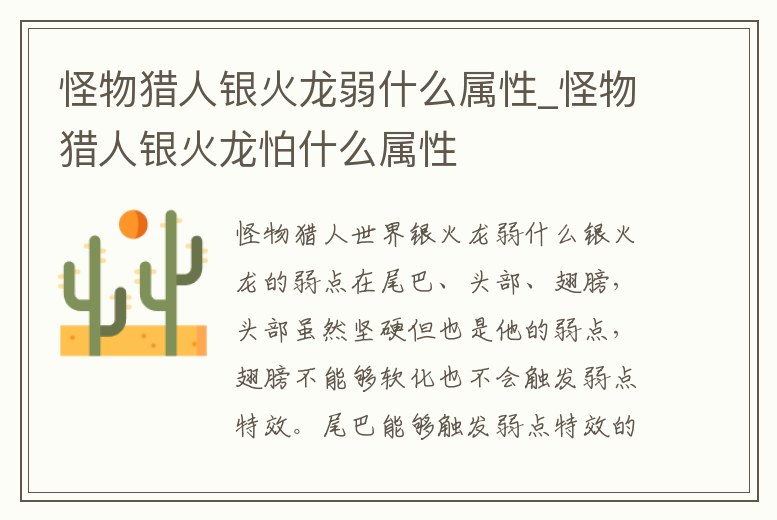 - 怪物獵人銀火龍弱什么屬性_怪物獵人銀火龍怕什么屬性