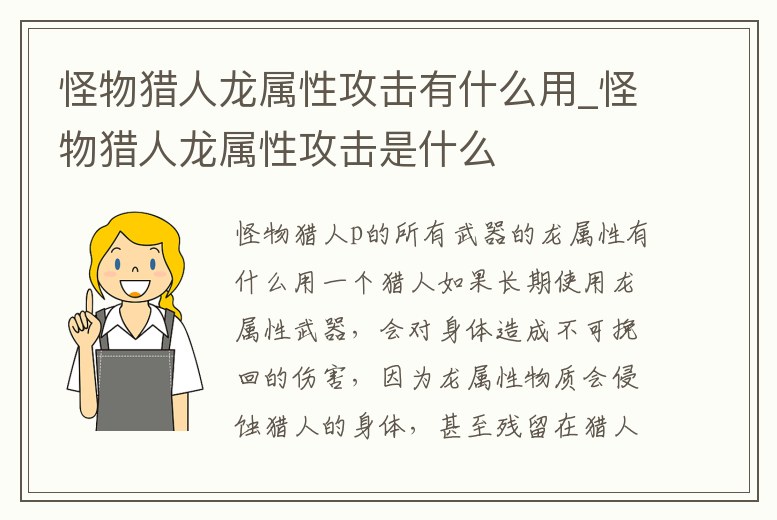 怪物獵人龍屬性攻擊有什么用_怪物獵人龍屬性攻擊是什么