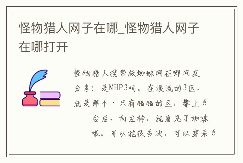 怪物獵人網子在哪_怪物獵人網子在哪打開