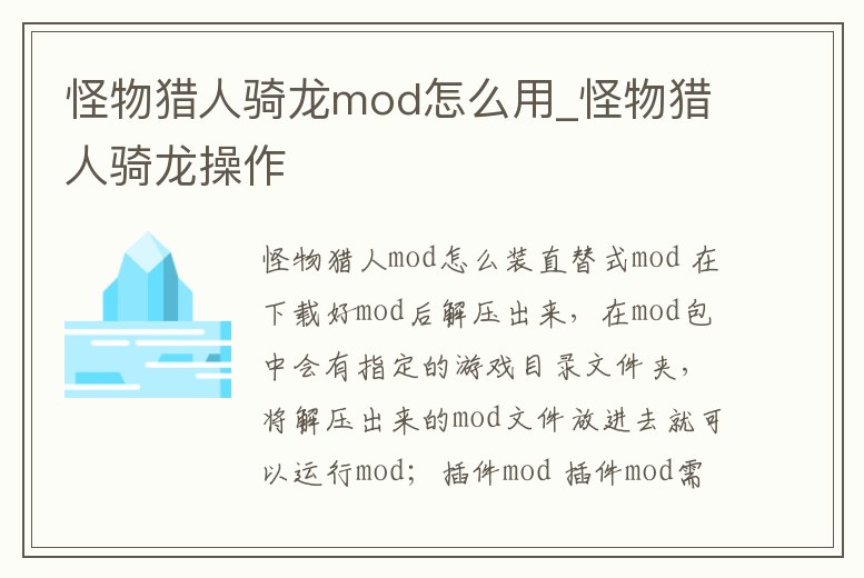 怪物獵人騎龍mod怎么用_怪物獵人騎龍操作