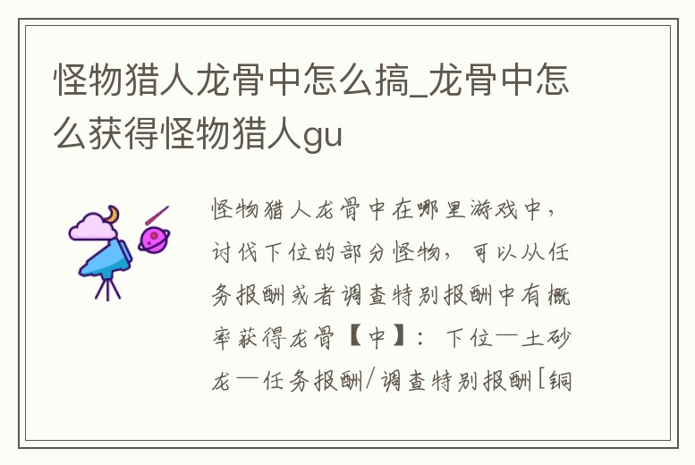 怪物獵人龍骨中怎么搞_龍骨中怎么獲得怪物獵人gu