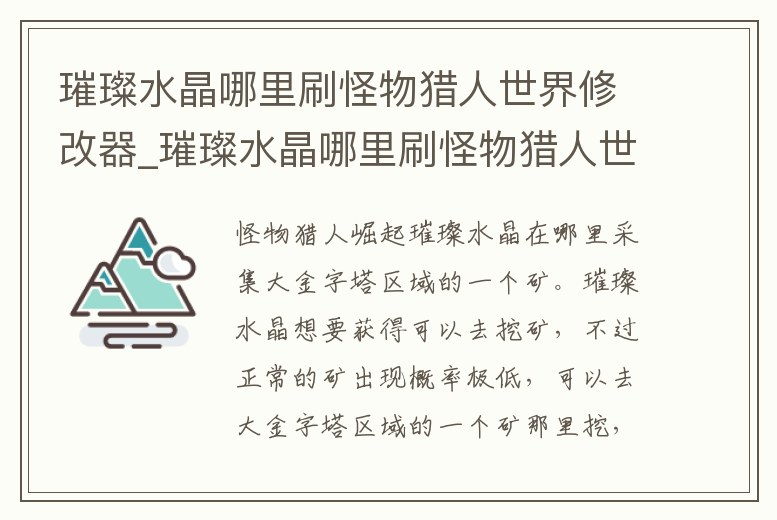 璀璨水晶哪里刷怪物獵人世界修改器_璀璨水晶哪里刷怪物獵人世界修改器最好