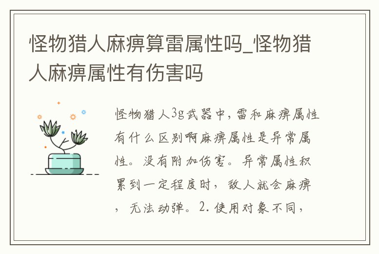怪物獵人麻痹算雷屬性嗎_怪物獵人麻痹屬性有傷害嗎