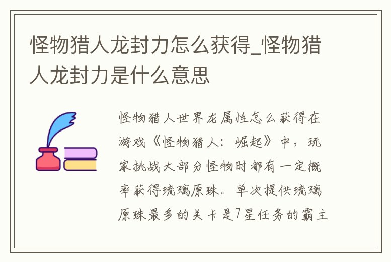 怪物獵人龍封力怎么獲得_怪物獵人龍封力是什么意思