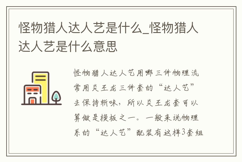 怪物獵人達人藝是什么_怪物獵人達人藝是什么意思