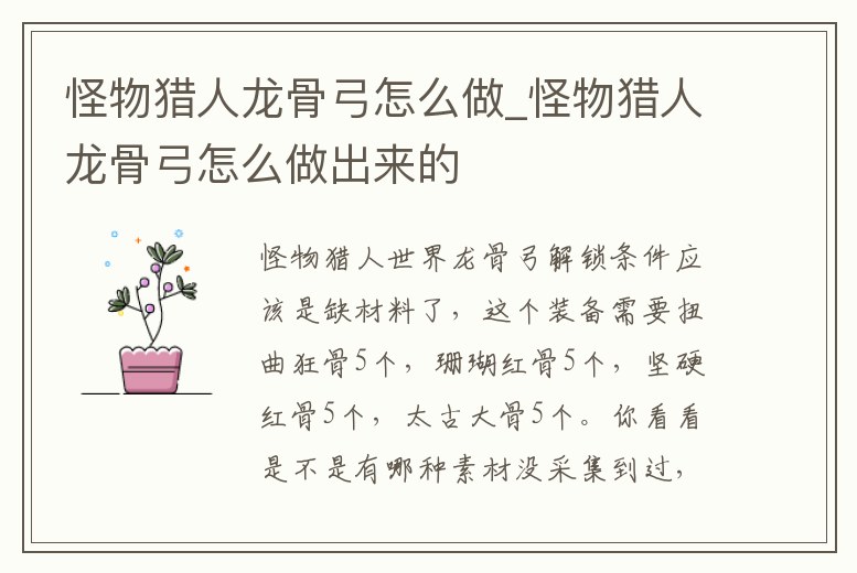怪物獵人龍骨弓怎么做_怪物獵人龍骨弓怎么做出來的