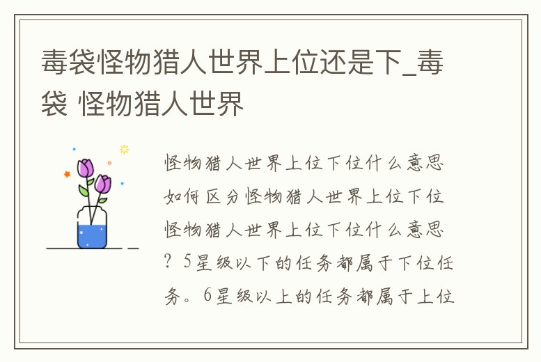 毒袋怪物獵人世界上位還是下_毒袋 怪物獵人世界