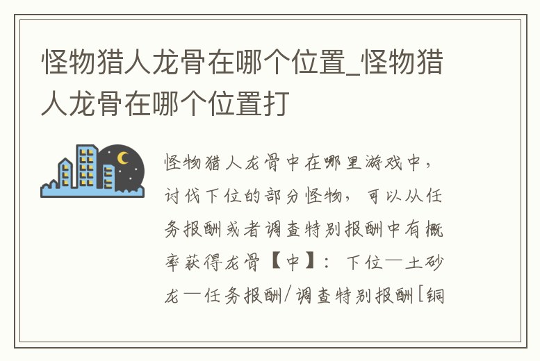 怪物獵人龍骨在哪個位置_怪物獵人龍骨在哪個位置打