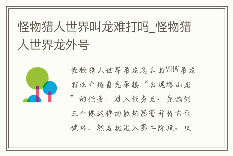 怪物獵人世界叫龍難打嗎_怪物獵人世界龍外號
