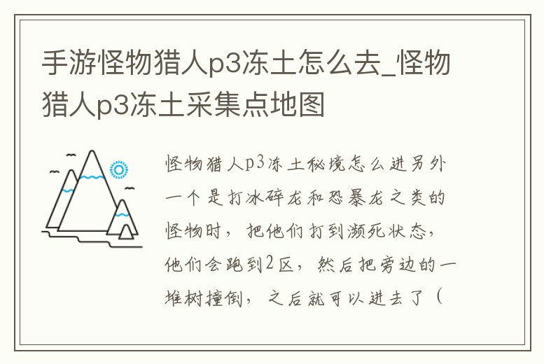 手游怪物獵人p3凍土怎么去_怪物獵人p3凍土采集點地圖