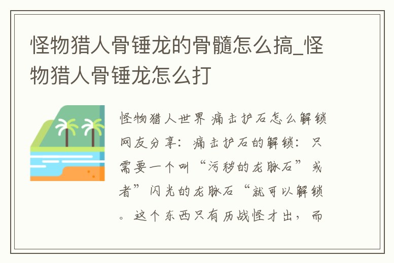 怪物獵人骨錘龍的骨髓怎么搞_怪物獵人骨錘龍怎么打