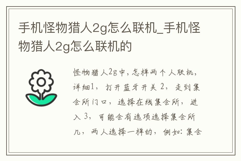 手機怪物獵人2g怎么聯機_手機怪物獵人2g怎么聯機的