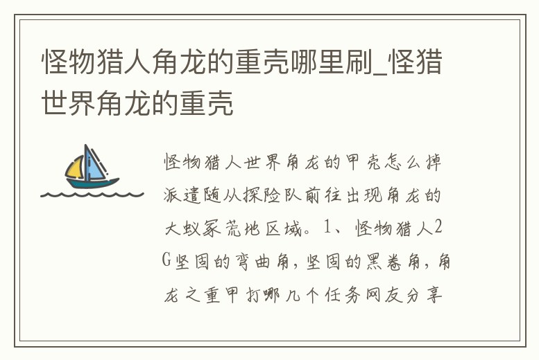 怪物獵人角龍的重殼哪里刷_怪獵世界角龍的重殼