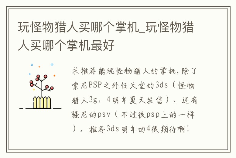 玩怪物獵人買哪個掌機_玩怪物獵人買哪個掌機最好