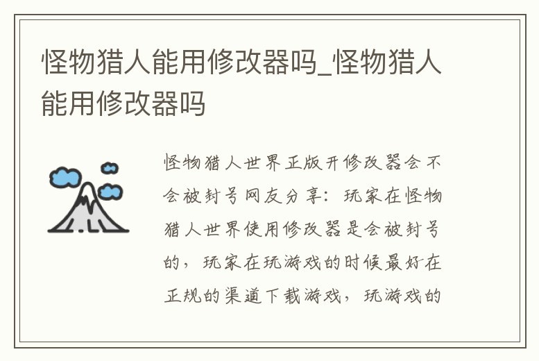 怪物獵人能用修改器嗎_怪物獵人能用修改器嗎