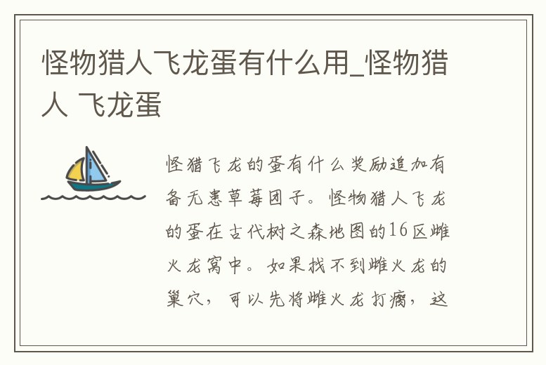 1、怪物獵人3里抱飛龍的蛋有什么用
