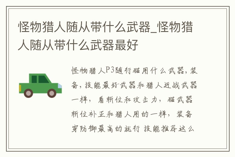 怪物獵人隨從帶什么武器_怪物獵人隨從帶什么武器最好