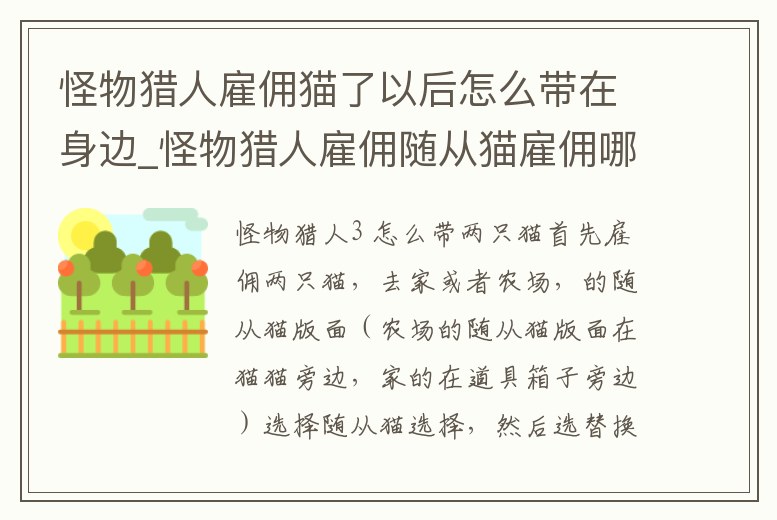 - 怪物獵人雇傭貓了以后怎么帶在身邊_怪物獵人雇傭隨從貓雇傭哪個(gè)比較好