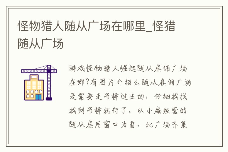 游戲怪物獵人崛起隨從雇傭廣場在哪?有圖片介紹么