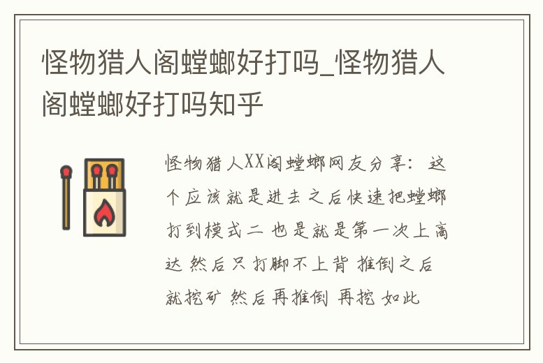 怪物獵人閣螳螂好打嗎_怪物獵人閣螳螂好打嗎知乎