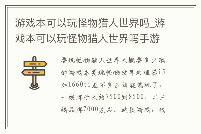 游戲本可以玩怪物獵人世界嗎_游戲本可以玩怪物獵人世界嗎手游