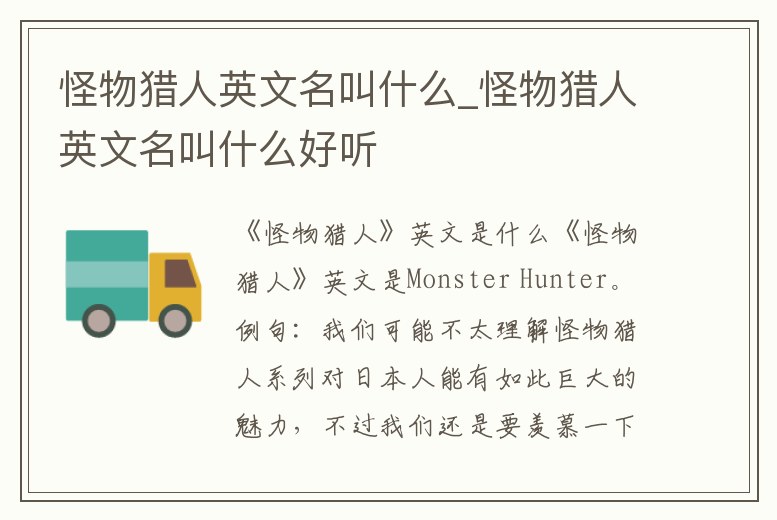 怪物獵人英文名叫什么_怪物獵人英文名叫什么好聽