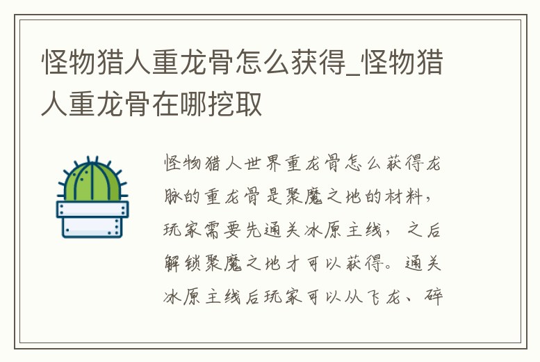 怪物獵人重龍骨怎么獲得_怪物獵人重龍骨在哪挖取