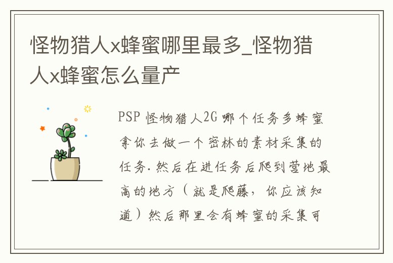 怪物獵人x蜂蜜哪里最多_怪物獵人x蜂蜜怎么量產