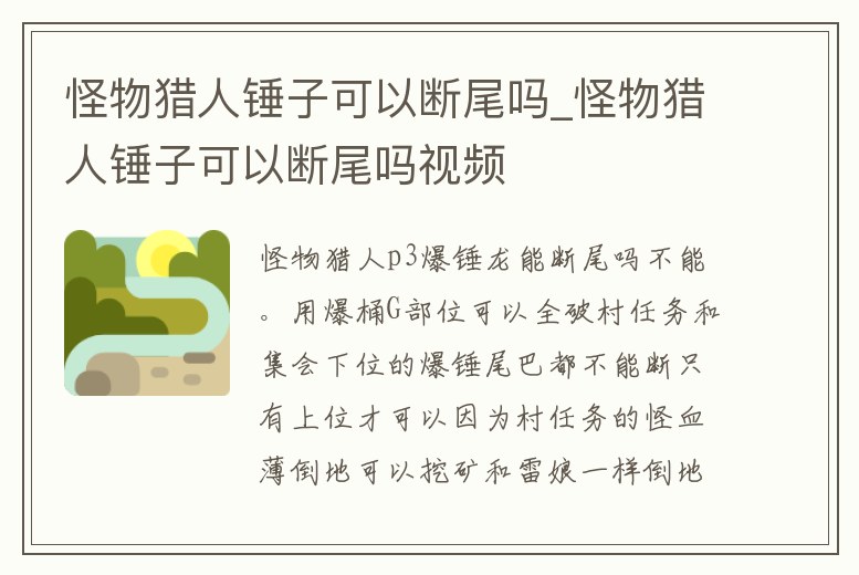 - 怪物獵人錘子可以斷尾嗎_怪物獵人錘子可以斷尾嗎視頻