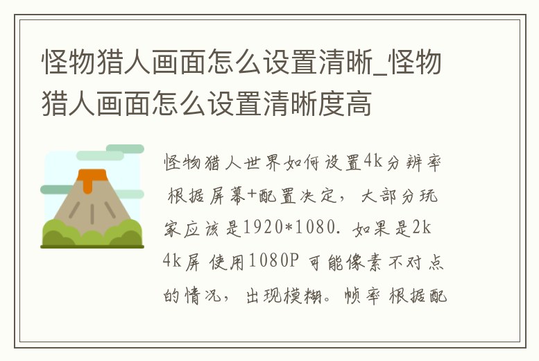 怪物獵人畫面怎么設置清晰_怪物獵人畫面怎么設置清晰度高